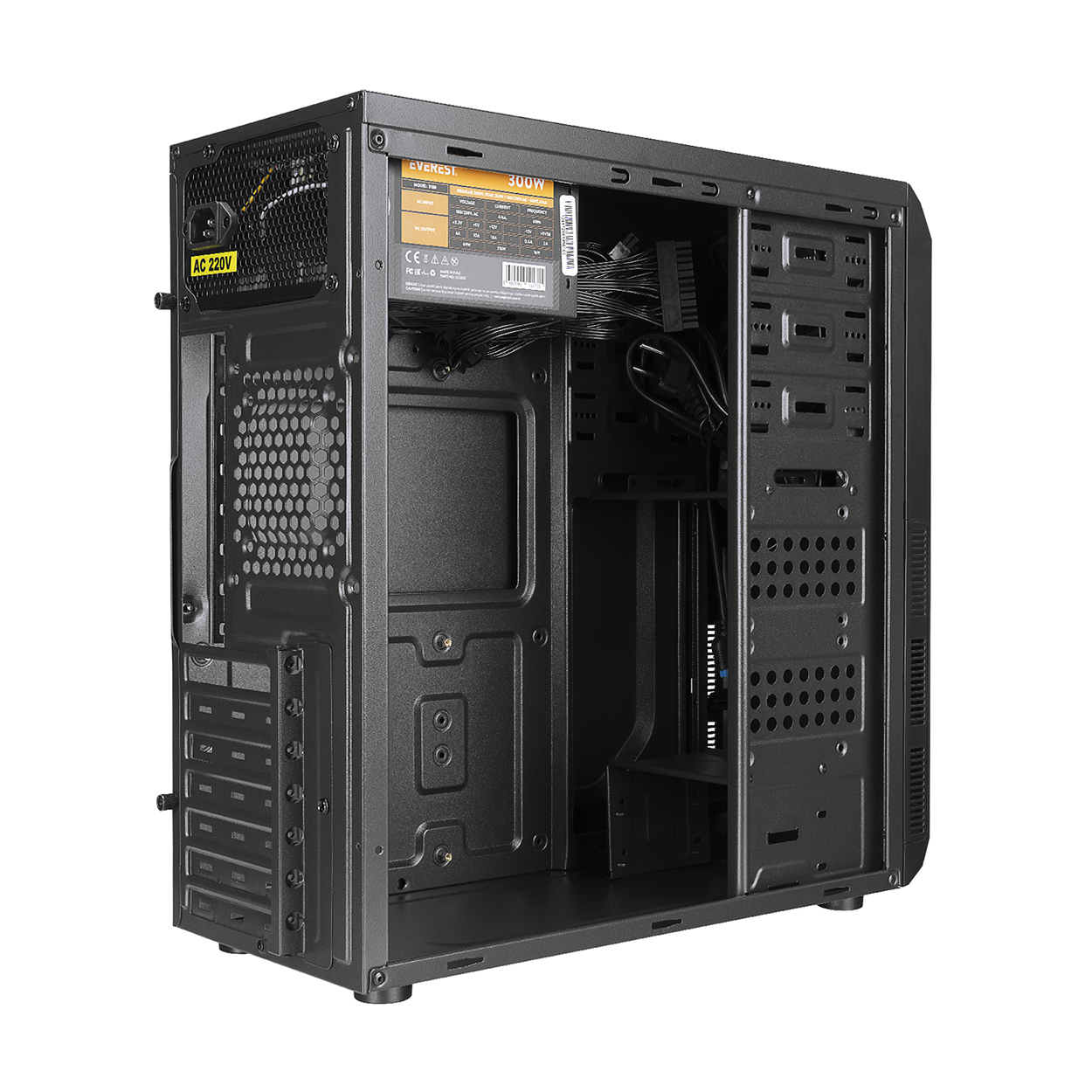 EVEREST 318B 300W Peak Siyah Metal Panel ATX Mid-T PC Kasası