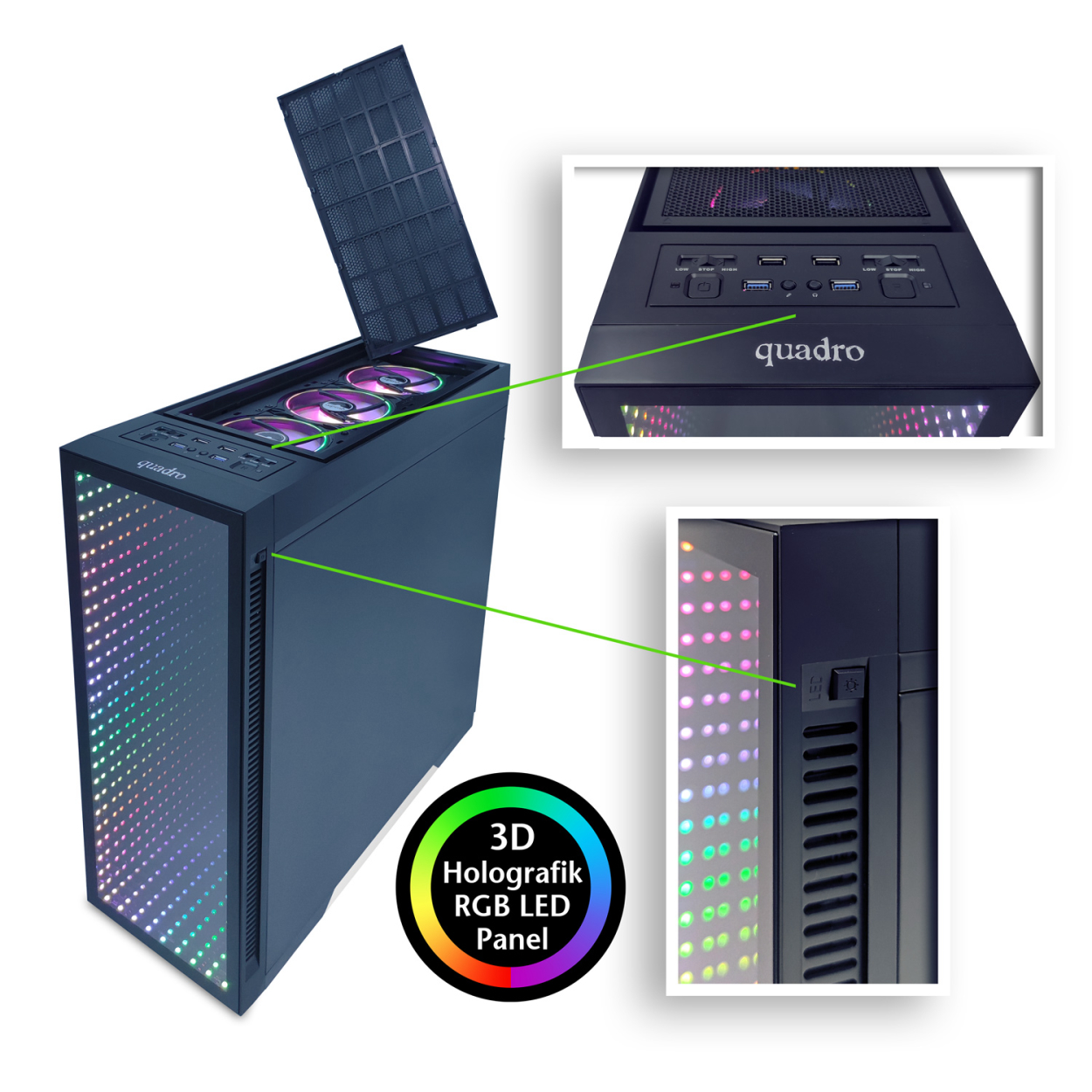 QUADRO QT100 TITAN Gaming Kasa Pencereli 3D 4xRGB FAN
